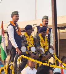 अखिल भारतीय पूर्व सैनिक सेवा परिषद छत्तीसगढ़ जिला रायपुर के तत्वाधान में संचालित निशुल्क सैन्य प्रशिक्षण केंद्र अभनपुर से प्रशिक्षण प्राप्त कर अग्निवीर थल सेना में चयनित दो जुड़वा भाई झम्मन एवं झामेश्वर तारक आर्टी सेंटर हैदराबाद से प्रशिक्षण उपरांत वापस दिनांक 6 दिसंबर 2025 को रायपुर पहुंचे, रायपुर रेलवे स्टेशन में हवलदार राकेश कुमार सोनी द्वारा स्वागत किया गया