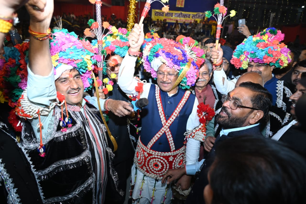 मुख्यमंत्री श्री विष्णुदेव साय पारंपरिक रावत नाचा वेशभूषा में मंच पर पहुंचे और कलाकारों का उत्साहवर्धन किया। उन्होंने कहा कि “यदुवंशी समाज वह समाज है, जहां प्रभु श्रीकृष्ण ने जन्म लिया। छत्तीसगढ़ की नृत्य–गायन परंपरा हमारी सांस्कृतिक समृद्धि और एकता का सजीव प्रतीक है।” मुख्यमंत्री ने ‘तेल फूल में लइका बाढ़े…’ दोहा गाकर यदुवंशी समाज एवं नर्तन दलों को आशीर्वचन भी दिया।