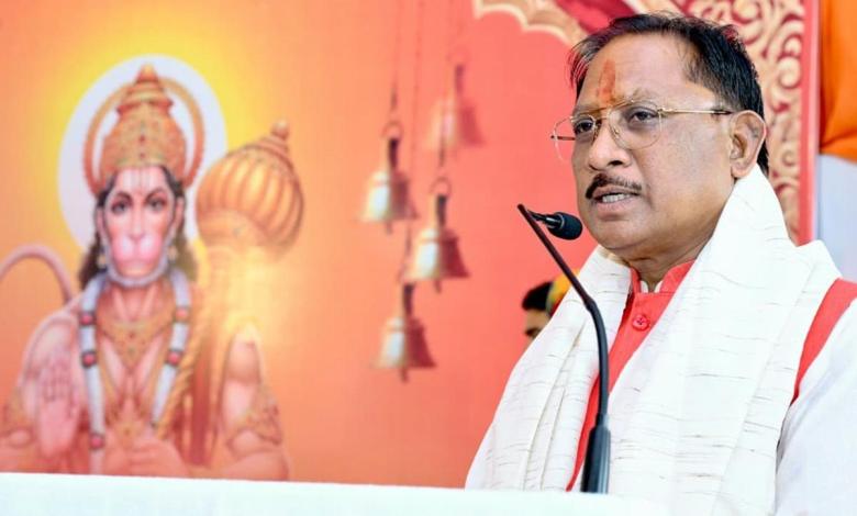 मुख्यमंत्री श्री विष्णुदेव साय आज श्री हनुमान जन्मोत्सव के पावन अवसर पर राजधानी रायपुर के स्टेशन चौक स्थित नर्मदा कुंड राम जानकी मंदिर में आयोजित श्री हनुमान उत्सव एवं श्री राम कथा कार्यक्रम में शामिल हुए। इस अवसर पर मुख्यमंत्री ने कहा कि प्रभु श्री राम के अनन्य भक्त श्री हनुमान का जीवन हम सभी के लिए प्रेरणादायक है। बल, बुद्धि और विद्या के दाता हनुमान जी हमें सिखाते हैं कि हमारे जीवन में निष्ठा, सेवा और समर्पण कैसा होना चाहिए।