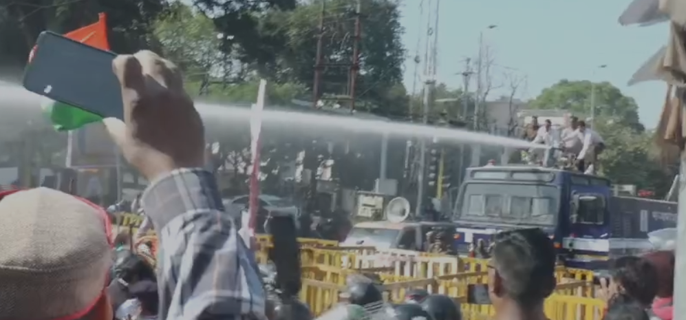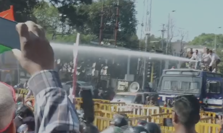 हालात बेकाबू होते देख पुलिस ने वाटर कैनन का इस्तेमाल किया। इस कार्रवाई के दौरान एक बुजुर्ग प्रदर्शनकारी घायल हो गया, जिसे मौके पर मौजूद लोगों ने संभाला। घटना के बाद प्रदर्शनकारियों का गुस्सा और भड़क गया।