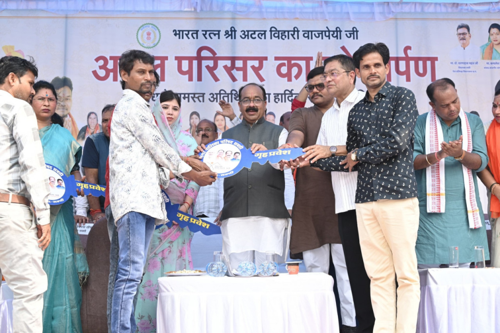 उप मुख्यमंत्री श्री अरुण साव ने आज अपने सक्ती प्रवास के दौरान अटल परिसर के लोकार्पण के साथ ही विभिन्न विकास कार्यों का भी लोकार्पण एवं भूमिपूजन किया। उन्होंने आज सक्ती जिले के लिए कुल 48 करोड़ 73 लाख रुपए से अधिक के विकास कार्यों का भूमिपूजन और लोकार्पण किया। इनमें सक्ती नगर पालिका में 30 लाख रुपए की लागत से निर्मित अटल परिसर और तीन करोड़ नौ लाख रुपए की लागत से सोसायटी चौक से बुधवारी बाजार होते हुए गुरुनानक कॉम्प्लेक्स तक बी.टी. रोड निर्माण कार्य, चौड़ीकरण एवं सौंदर्यीकरण कार्य का लोकार्पण शामिल हैं। श्री साव ने चार करोड़ 41 लाख रुपए की लागत से बनने वाले नालंदा परिसर का भूमिपूजन भी किया।