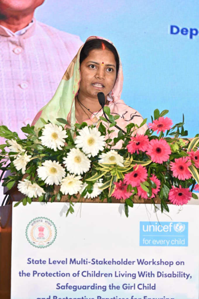 महिला एवं बाल विकास विभाग एवं यूनिसेफ के संयुक्त तत्वावधान में राजधानी रायपुर के एक होटल में “दिव्यांग बच्चों के संरक्षण, बालिकाओं की सुरक्षा तथा बच्चों के सर्वाेत्तम हित के लिए पुर्नस्थापनात्मक व्यवहार” विषय पर राज्य स्तरीय बहु-हितधारक कार्यशाला का सफल आयोजन किया गया।