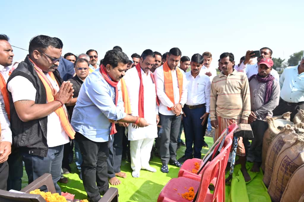 कबीरधाम जिले के बोड़ला विकासखंड स्थित महराजपुर धान उपार्जन केंद्र में आज उपमुख्यमंत्री श्री विजय शर्मा ने समर्थन मूल्य पर धान खरीदी महापर्व का विधिवत शुभारंभ किया। इस अवसर पर उन्होंने परम्परागत रूप से तौल यंत्रों की पूजा-अर्चना कर, किसानों का तिलक करते हुए श्रीफल भेंट किया। उन्होंने खरीदी प्रक्रिया की शुरुआत कर किसानों का उत्साहवर्धन किया।