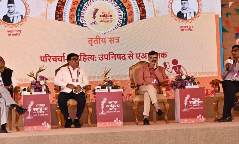 नवा रायपुर में आयोजित साहित्य महोत्सव 2026 के दूसरे दिन कवि-कथाकार अनिरुद्ध नीरव मंडप पर साहित्य : उपनिषद से एआई तक विषय पर केंद्रित परिचर्चा आयोजित हुई। इस परिचर्चा में वक्ता के रूप में ट्रिपल आईटी नवा रायपुर के डायरेक्टर डॉ. ओमप्रकाश व्यास, वरिष्ठ पत्रकार श्री प्रफुल्ल केतकर, वरिष्ठ लेखक डॉ. गोपाल कमल शामिल हुए। परिचर्चा के सूत्रधार साहित्यकार श्री संजीव तिवारी रहे, परिचर्चा का यह सत्र कवि जगन्नाथ प्रसाद भानु को समर्पित रहा। इस अवसर पर डॉ. गोपाल कमल द्वारा लिखित पुस्तक, गुणाढ्य की गुणसूत्र कथा का विमोचन किया गया।