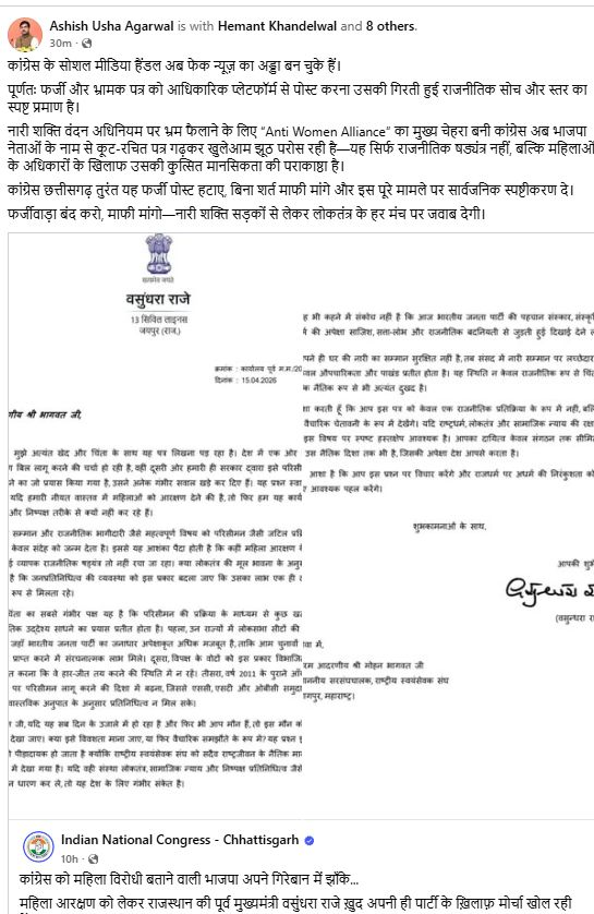वसुंधरा राजे के नाम पर फर्जी पत्र! BJP का कांग्रेस पर बड़ा हमला, माफी की मांग…