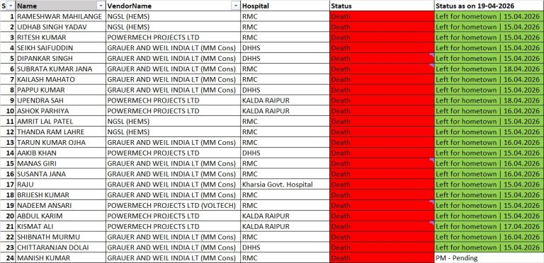 - करीब 9–10 श्रमिक अभी भी गंभीर रूप से घायल, अलग-अलग अस्पतालों में इलाज जारी